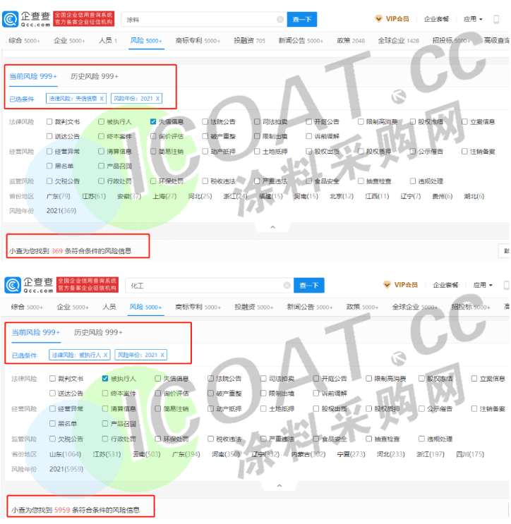 據(jù)涂料采購網不完全統(tǒng)計,僅2021年至今半年多的時間就有數(shù)千家涂料、化工企業(yè)被列為失信被執(zhí)行人,震撼的數(shù)據(jù)讓不少人膽戰(zhàn)心驚。這不僅意味著企業(yè)進入“黑名單”,企業(yè)的高管受到眾多約束,也意味著與其有合作的企業(yè)面臨較大的風險。