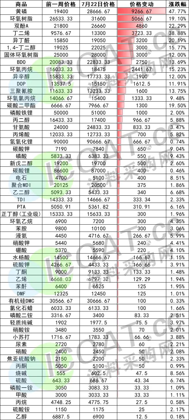 一周上漲最高9266元/噸,黃磷、樹脂等化工品瘋狂拉漲!