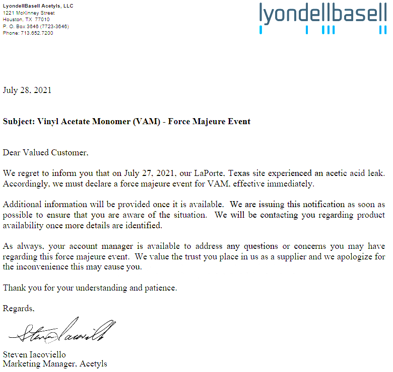 據涂料采購網了解,近期多家海外化工龍頭企業遭遇不可抗力,設備設施無法正常運行,導致交期延長或無法交貨,有些化工企業年初的不可抗力還沒有解除,市場供給一度陷入中斷,引發眾多化工人擔憂。