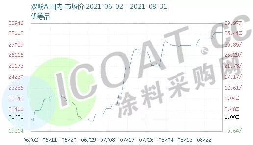 貨源緊缺推高了雙酚A的價(jià)格,也使得生產(chǎn)商家和貿(mào)易商漲價(jià)心態(tài)堅(jiān)挺。據(jù)涂料采購(gòu)網(wǎng)了解,近期有不少化工原材料漲勢(shì)迅猛,連創(chuàng)新高,價(jià)格暴漲超過(guò)500%,但仍未澆滅下游客戶的搶貨熱情,“搶購(gòu)潮”與“漲價(jià)潮”共同拉開(kāi)了“金九銀十”的序幕。