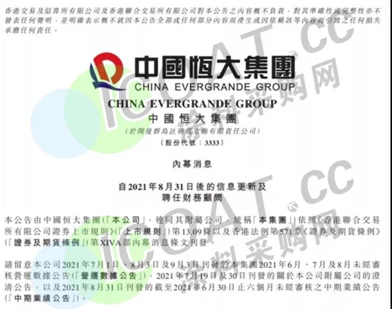 公告披露,集團于2021年6月、7月及8月的物業合約銷售金額分別為人民幣716.3億元、437.8億元、380.8億元,呈下降趨勢,并預計9月物業合約銷售持續大幅下降。