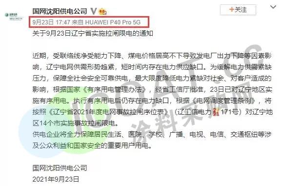 國網沈陽供電公司曾發布通知稱,受聯絡線凈受能力下降、煤電價格居高不下導致發電廠出力下降等因素影響,遼寧電網供需形勢趨緊,短時間內存在電力供應缺口。經省工信廳批準,23日已對遼寧地區實施有序用電。執行有序用電后仍存在電力缺口,根據《電網調度管理條例》,將按照《遼寧省2021年度電網事故拉閘序位表》(遼工信電力毅171號)對遼寧地區14個市實施事故拉閘限電。