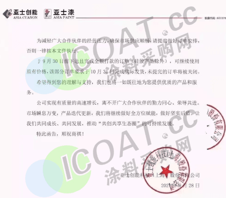 中遠佐敦船舶涂料(青島)有限公司:2021年各種原材料的價格一路攀升,居高不下。企業目前已經陸續收到上游原料供應商的限產通知,同時,工廠所在同一供電線路上已經出現被強制停電的公司。今年以來,其成本已上漲超50%。因此,經過慎重考慮,決定對產品價格進行上調。