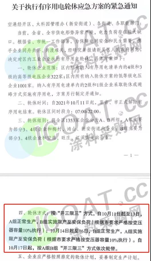 此外、山東、廣西、寧夏、青海、河南、內蒙古、陜西、安徽等多地也陸續實行有序用電,推行錯峰、避峰用電措施。這也就相當于大半個中國的企業均受到“雙限”影響,開工率驟降。部分企業甚至被要求10、11、12月各停產15-20天,其余的時間也要錯避峰生產,開工率降至三成以下。