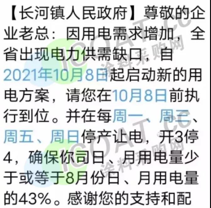8月份以來,在“能耗雙控”約束以及煤價高企等多種因素影響下,多地陸續實施限電限產相關舉措,全國20多個省市地區遭遇不同程度的停限電,30余家上市公司公告停產,并表示將對企業構成重大影響,數萬家化工企業被累及。往年十一小長假加班加點熱火朝天的化工企業卻早早宣布放假。