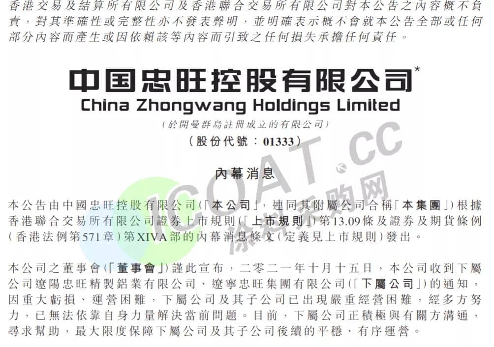 “重大虧損”、“經營困難”、“獨立董事離職”、“已無法依靠自身力量解決當前問題”……這則“內幕消息”揭開了中國忠旺經營困難的蓋子,“鋁業王國”的前途備受關注。