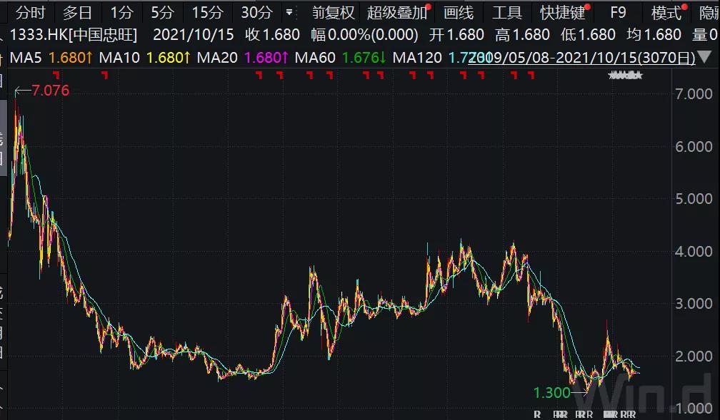 8月30日,系港交所規定的上市公司半年報披露最后截止日,中國忠旺卻遲遲不發布,自2021年8月30日以來,中國忠旺股票一直處于停牌狀態。數據顯示,截至停牌前,中國忠旺股價為1.68港元/股,已較高位跌去約75%。