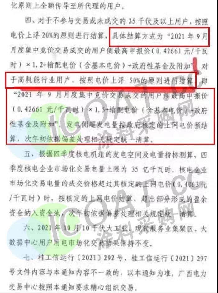 廣西發布《自治區工業和信息化廳關于進一步調整2021年全區電力市場化交易方案的緊急通知》,在緊急通知中,高耗能企業電價直接上浮50%進行結算。