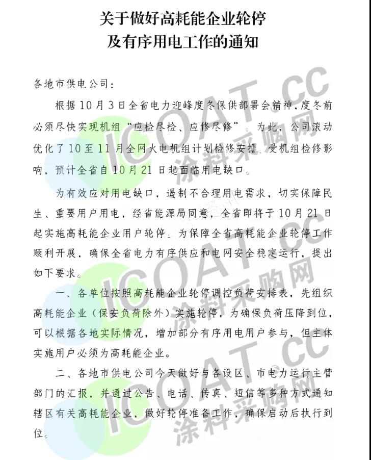 國網江西電力調度控制中心發布《關于做好高耗能企業輪停及有序用電工作的通知》,稱預計全省自10月21日起面臨用電缺口,為有效應對用電缺口,遏制不合理用電需求,全省即將于10月21日起實施高耗能企業用戶輪停。自10月21日起每日早高峰(10:00-11:00)、晚高峰(17:00-20:00)期間按照下達的調控負荷(輪停負荷)安排和地區用電指標,做好負荷控制。