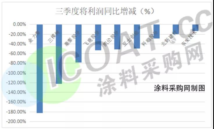 除此之外,涂料采購網注意到,集泰股份、飛鹿股份等7家涂料行業上市公司凈利潤較去年同比有所下降。