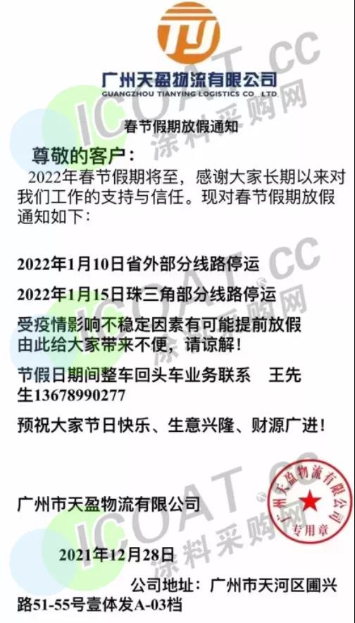 與此同時,眾多涂料、工業企業也開始做年末的收尾工作,即將提前開啟春節假期。