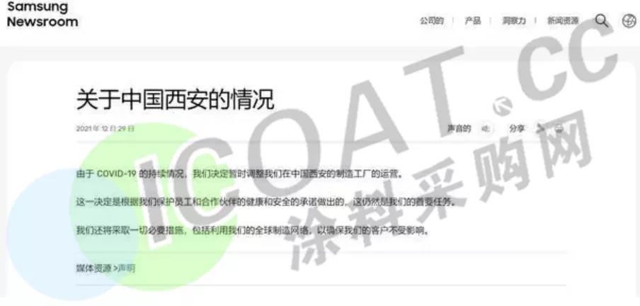 三星宣布,因疫情原因,將暫時調整中國西安工廠的運營,盡可能保護員工的安全。未來將采取一切必要措施,包括利用自己的全球制造網絡,來確保客戶不受本次調整的影響。