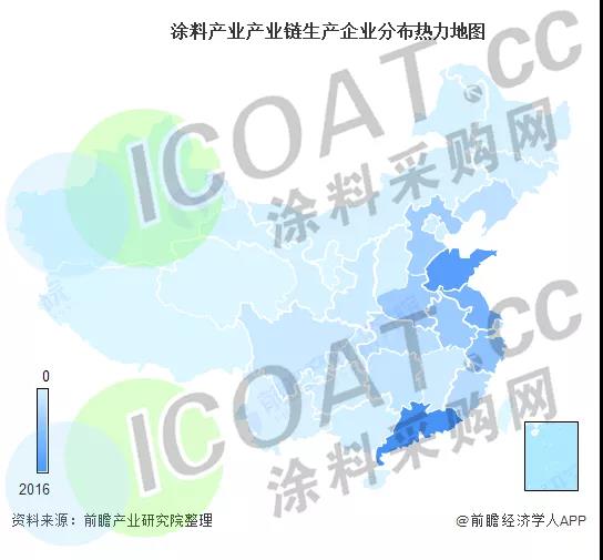 從我國涂料產業鏈分布來看,涂料企業普遍分布在廣東、山東、江蘇、浙江等東部沿海地區,其次是在安徽、河南、河北、福建等地區。也就是說,涂料企業普遍分布于下游行業集中的地區。例如鋁型材粉末涂料普遍在廣東佛山、鋁業之都山東臨朐等地;鋼制家具粉末涂料企業多在鋼制家具之都河南洛陽龐村等。這也就解釋了為何在以上這些地區涂料企業密集分布,且代加工情況多有發生。