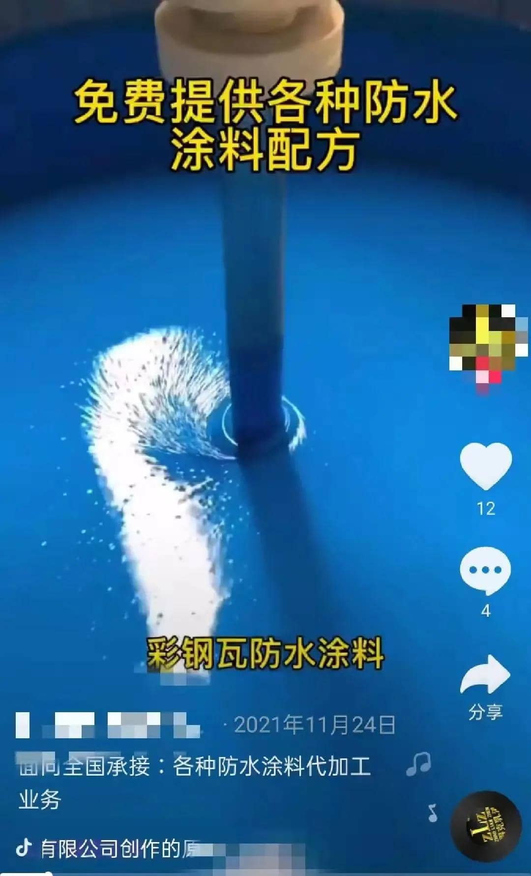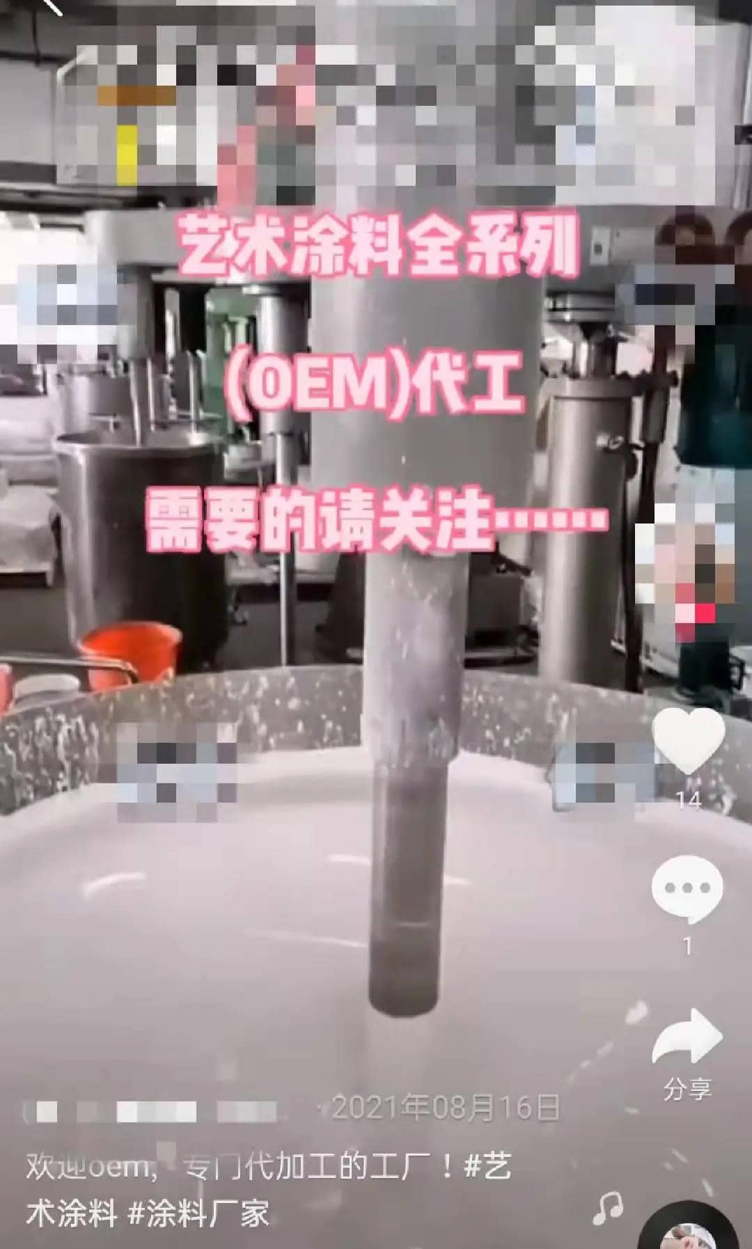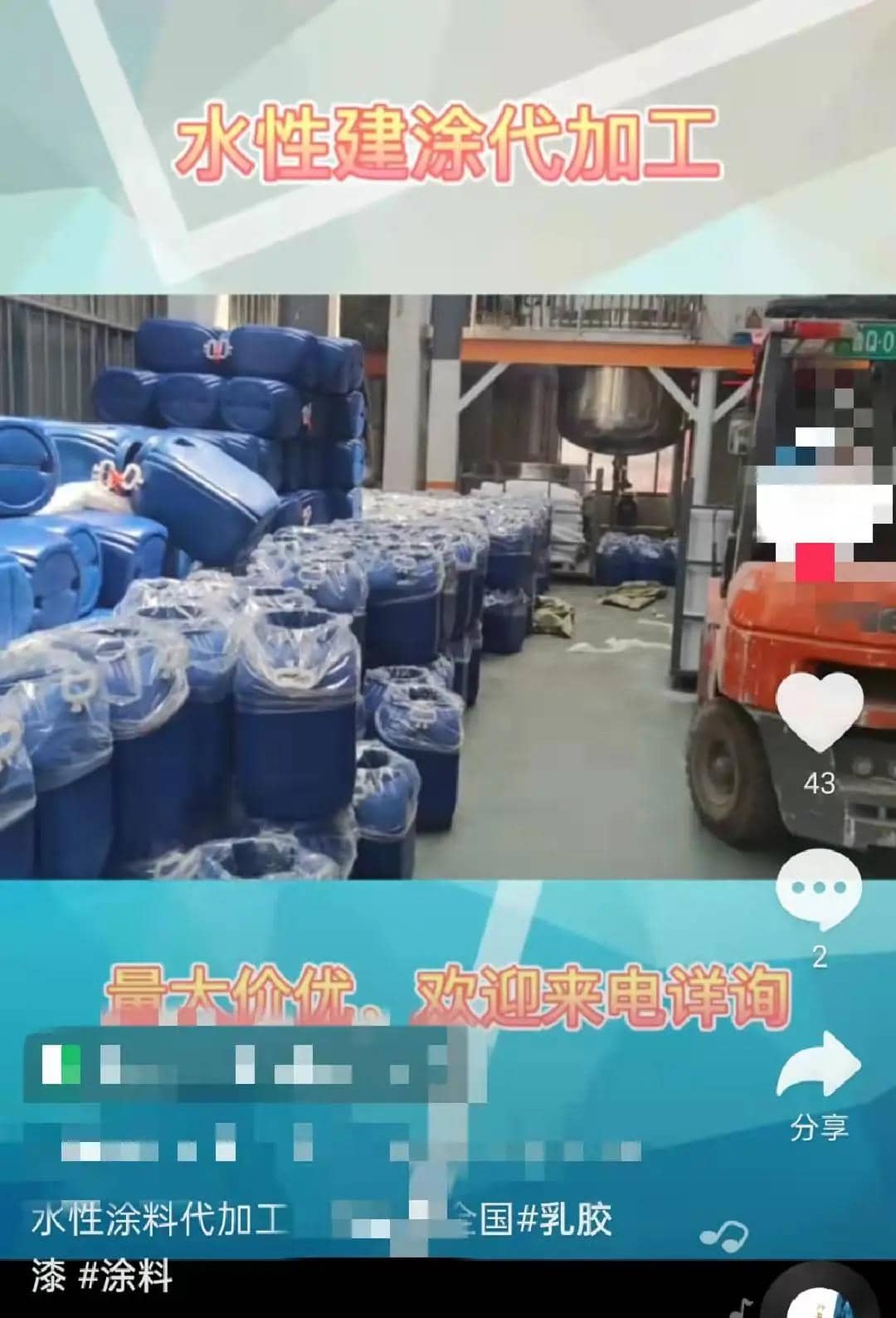 5代加工涂料廠,主做乳液、防水涂料、地坪漆產品,產能400-500噸/月。
