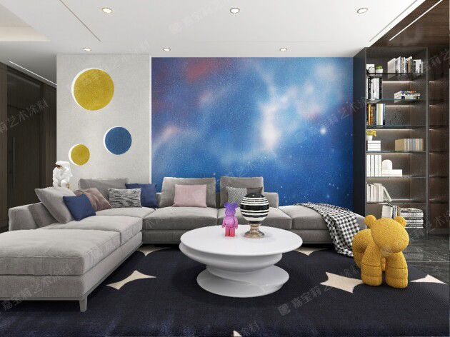 在平均海拔四千五百米的西藏阿里,總會讓人產生抬起手便能摸到星空的錯覺。世上流傳著一句形容西藏阿里的諺語:“這里的土地如此荒蕪,通往它的門徑如此之高,只有最親密的朋友和最深刻的敵人,才會前來探望我們”。嘉寶莉以阿里浩瀚星空為創作藍本,利用克里斯特拉搭配幻彩金屬漆來表現幽遠的夜空和燦爛的繁星,涂刷后漆膜表面具有金屬質感和晶瑩閃光的效果,配合家中吊燈燈光,能夠將深邃靜謐的夜空和星星點點的光芒在墻面上完美呈現,在家中創造一方宇宙,抬頭便是星空璀璨,伸手便可摘下星辰。