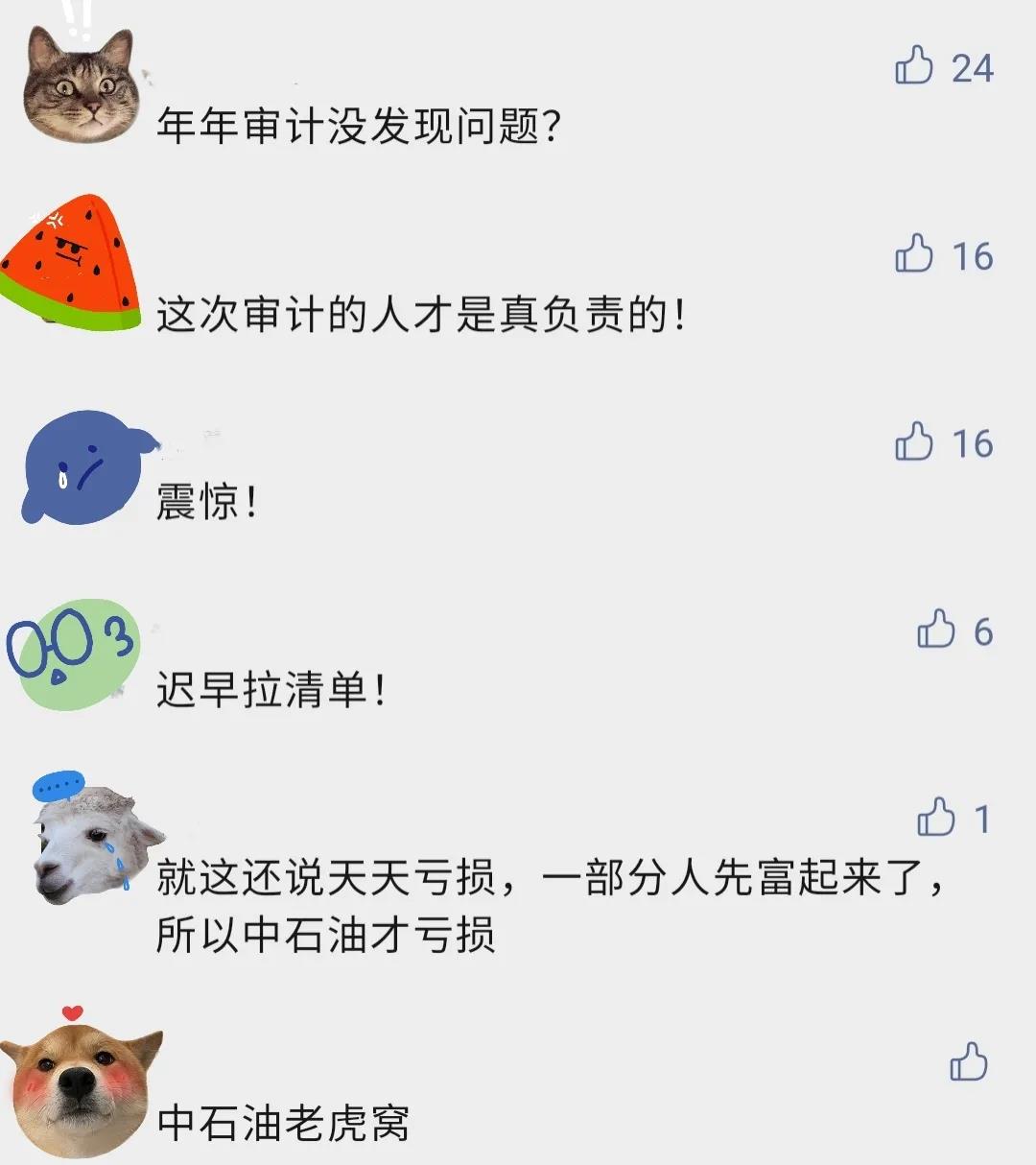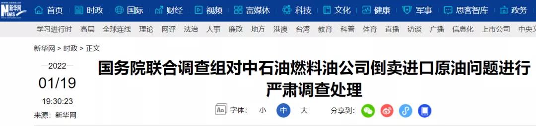 各地區、各有關部門、各中央企業要深入學習領會黨中央、國務院對中石油倒賣進口原油問題進行嚴肅調查處理的重要意義,增強“四個意識”,堅定“四個自信”,做到“兩個維護”,切實加強黨對國有企業的領導,推動各類企業依法依規經營,打造公平競爭的營商環境,推動完善社會主義市場經濟體制。以下是網友評論:
