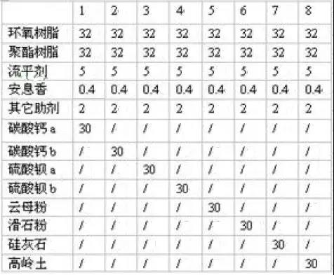 為了檢驗碳酸鈣的性質,我們選擇硫酸鋇、滑石粉、高嶺土、云母粉等與其作對比性實驗。實驗的配方如下: