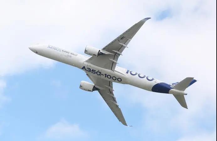 資料圖:空客A350-1000飛機在進行飛行表演。(圖源新華社)