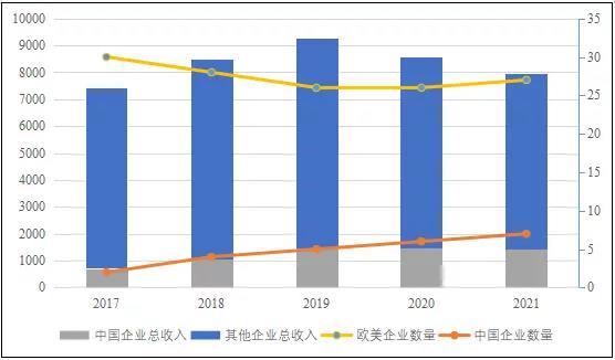 2017年以來全球化工企業50強榜單中中國企業總收入占比和企業數量均逐年增加,且2021年榜單內中國企業總收入降幅較小。