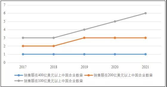 圖3 近年來全球化工50強榜單按銷售額統計的中國企業數量情況(單位:個)