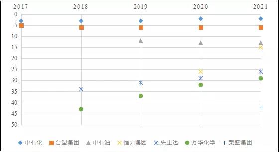 從產業政策來看,中國政府發布的《石化產業規劃布局方案》極大的支持了部分民營化工企業的業務規模提升,直接推動了其在全球化工企業50強榜單中的排名提升。