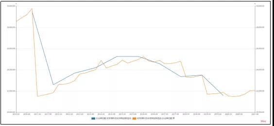 從行業集中度來看,2017年以來,中國化工企業數量較2016年的高點(超過25000個)逐年下降至2020年的21000個左右,2021年以來僅小幅回升。