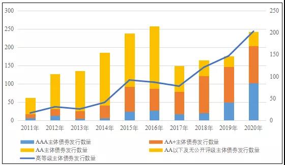 圖18 近年來中國化工企業債券不同級別主體發行數量情況