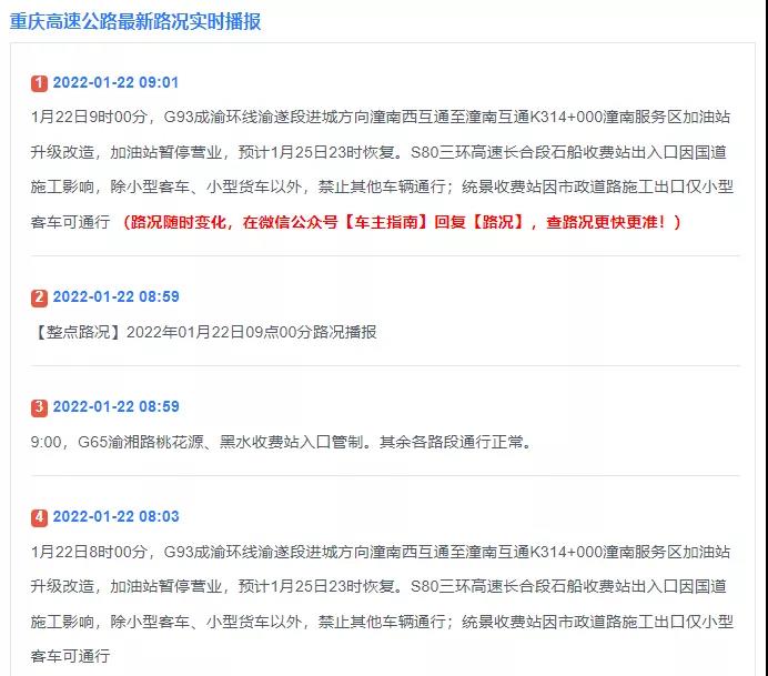 因事故,臨時(shí)關(guān)閉入口的有:G50滬渝高速往重慶方向長陽至賀家坪段。