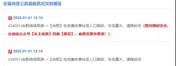 合肥繞城高速:崗集、雙墩、三十頭入口封閉。