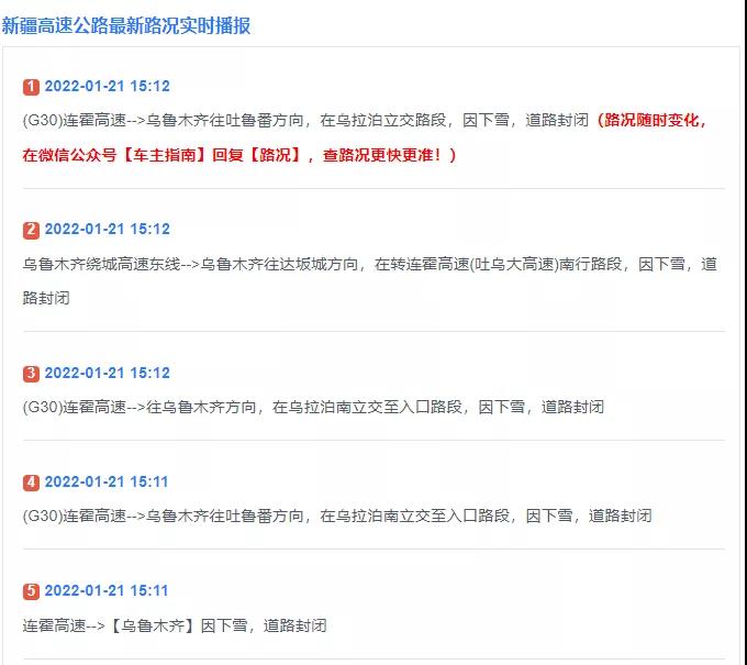 (G30)連霍高速-->烏魯木齊往吐魯番方向,在烏拉泊立交路段,因下雪,道路封閉。