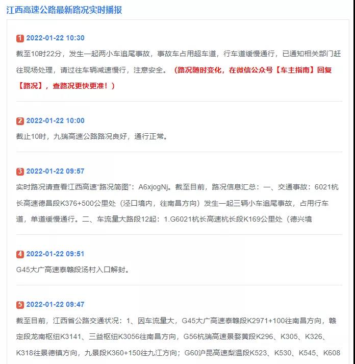 受滬昆高速梨溫段車流量大影響,德上高速玉山西收費(fèi)站入口封閉,三清山西、大茅山收費(fèi)站往上饒方向入口封閉。G60滬昆高速梨溫段,K545公里處(上饒服務(wù)區(qū)附近,往南昌方向)路面車流量大,上饒東、上饒西、經(jīng)開區(qū)站入口往南昌方向封閉。