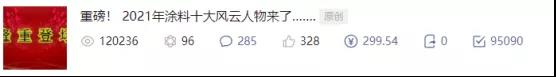 為涂料行業(yè)的長遠健康發(fā)展,涂料采購網(wǎng)發(fā)起2021年度十大風(fēng)云人物評選活動,根據(jù)騰訊統(tǒng)計中心數(shù)據(jù)顯示,2021年十大風(fēng)云人物評選活動僅網(wǎng)絡(luò)投票環(huán)節(jié)12萬人高度關(guān)注,參與投票的人數(shù)接近10萬人。一時之間,涂料人的朋友圈被瞬間刷屏,可以稱之為2021年涂料行業(yè)一大盛事。