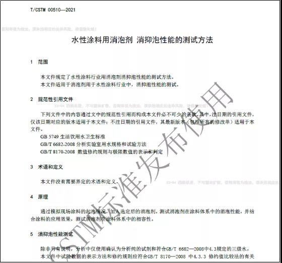 江蘇四新科技應用研究所股份有限公司(以下簡稱“四新科技”)作為消泡劑行業(yè)的龍頭企業(yè),一直致力于消泡劑行業(yè)的發(fā)展和技術革新,近期,四新科技攜手揚州四新新材料科技有限公司、山西省化工研究所(有限公司)起草了《水性涂料用消泡劑消抑泡性能的測試方法》T/CSTM 00510—2021團體標準于2021年12月10日開始實施。