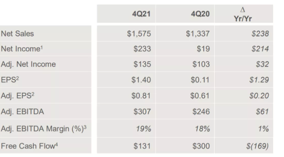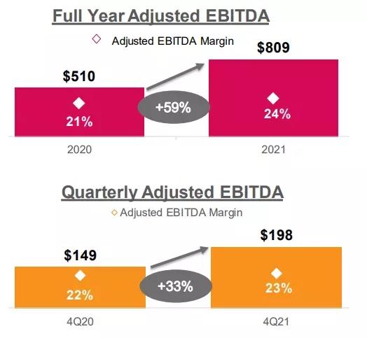 該公司預計2022年調整后EBITDA將在13億美元至14.25億美元之間。調整后的每股收益預計在4.07美元至4.70美元之間。該公司預計自由現金流將超過5億美元,其中包括約4億美元的資本支出。