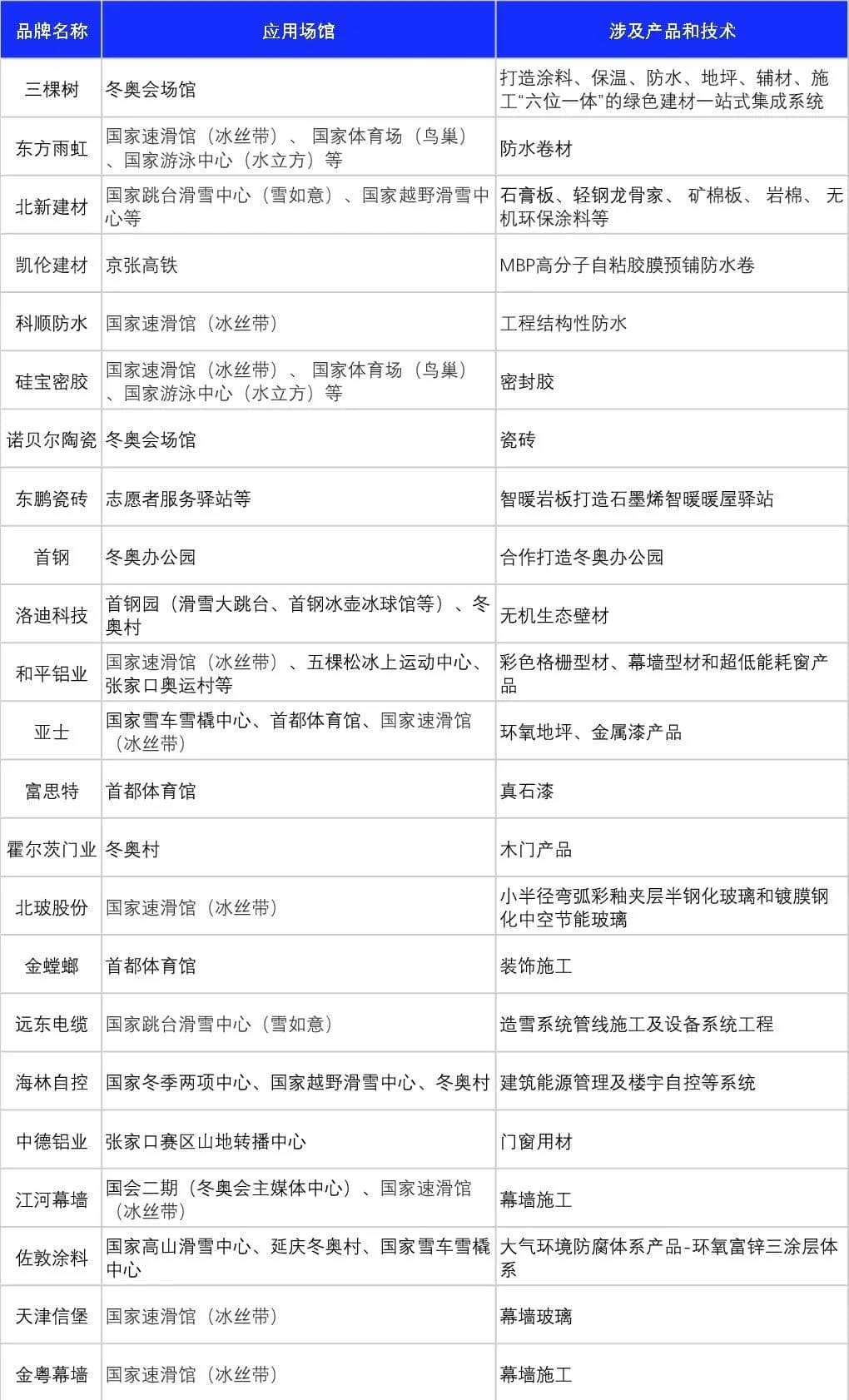 據(jù)不完全統(tǒng)計,全國有20家+建材品牌直接或間接參與搞“綠”冬奧建筑。