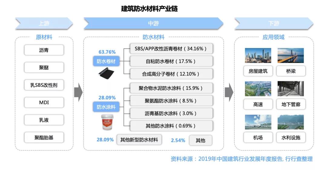 國內建筑防水材料主要分為防水卷材、防水涂料兩大類