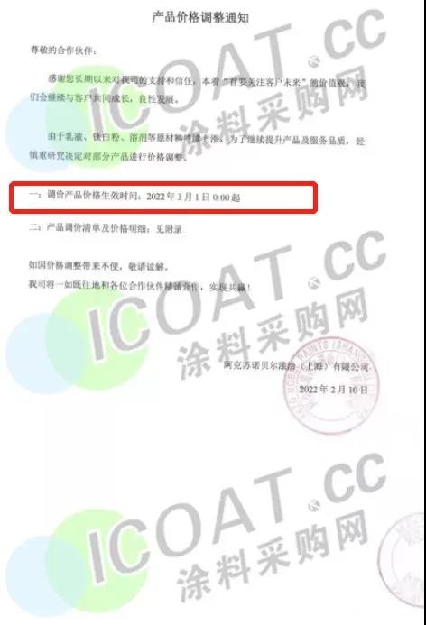 阿克蘇諾貝爾漆油(上海)有限公司:3月1日0:00起,對部分產(chǎn)品進行價格調(diào)整。