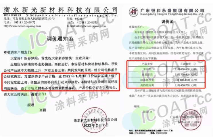 漲價函滿天飛!乳液、樹脂、涂料等多個類別紛紛調漲!