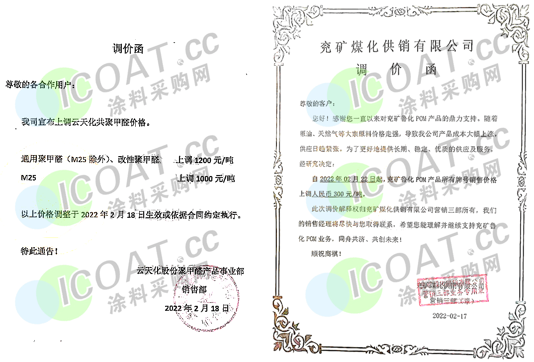 兗礦煤化供銷有限公司:自2月22日起,POM產品所有牌號銷售價格上調300元/噸。