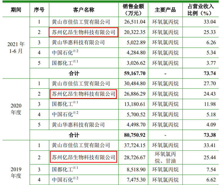 2019年以來,蘇州億昂生物科技有限公司接棒景福貿(mào)易成為第二大客戶,該公司并非環(huán)氧樹脂的下游企業(yè)。同時,該公司的大股東羅國明的關(guān)聯(lián)企業(yè)中也包括景福貿(mào)易。