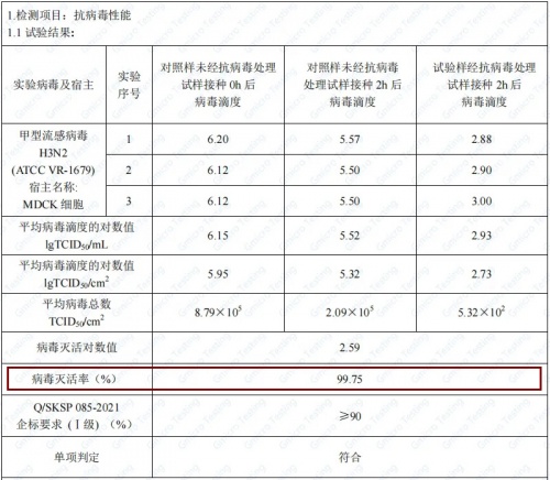 小森科創(chuàng)晶瓷板甲型流感病毒滅活率檢測結(jié)果
