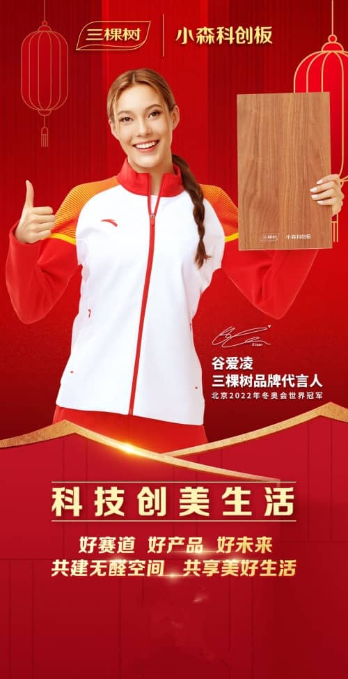 暨三棵樹小森科創(chuàng)板獨家定制冰花白-“愛凌”色首次掀起“全屋無醛”風(fēng)潮后,此次攜手谷愛凌登上中央廣播電視總臺央廣,再次成功實現(xiàn)行業(yè)破圈。三棵樹小森科創(chuàng)板健康、環(huán)保、安全等特質(zhì),成功俘獲谷愛凌“ 芳心”,傾情推薦三棵樹小森科創(chuàng)板綠色?產(chǎn)品。