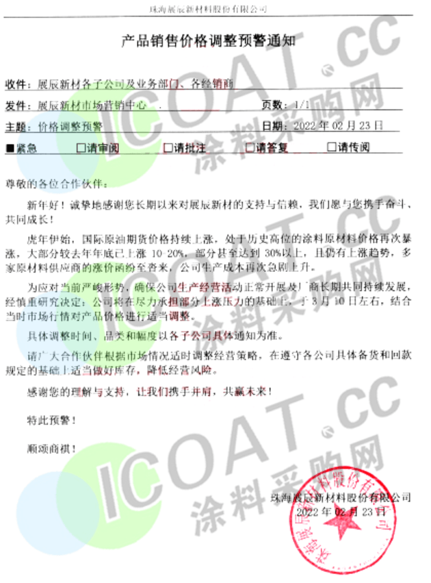 求生存,立邦、美涂士、展辰等多家涂料企業發函調漲