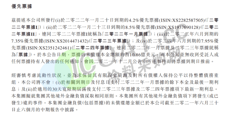 陽光城公告,存續規模分別為3億美元和3.57億美元的兩筆美元債未能在30日豁免期內(即2022年2月15日)支付利息,合計約2726萬美元(折合人民幣約1.73億元),構成實質性違約。