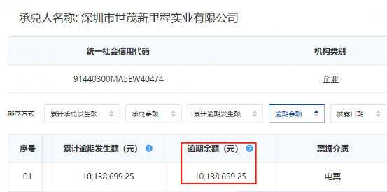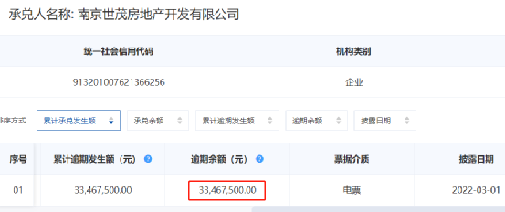 從逾期余額來看,最少的有幾十萬,多的從1000多萬到3000多萬元不等,如金額最大的南京世茂房地產開發有限公司,逾期余額為3346.75萬元。與中信信托60億資金逾期的深圳龍崗項目主體“深圳市世茂新里程實業有限公司”逾期金額1014萬元。