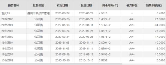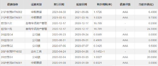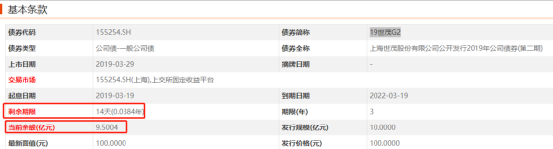 2019年3月世茂集團旗下世茂股份發行了一只期限3年、金額10億元的公司債“19世茂G2”,到期日為2022年3月19日,目前只剩下14天,當前余額仍有9.5億元。