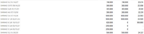 另外,世茂集團目前還存續8筆美元債,總金額約57億美金,約合人民幣360億元,其中今年7月將到期一筆,金額9.98億美元。目前這些美元債價格大部分跌到了1美元面值20多美分區間,與爆雷房企價格區間幾無差別。