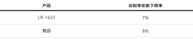 實驗結果:兩次循環試驗后觀察測試板,結果競品試板比LR-1633試板稍臟;測試兩者反射率,競品反射率系數下降率比LR-1633的稍大,所以LR-1633耐沾污性優于競品。