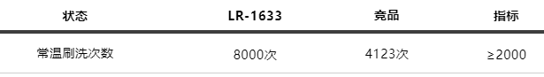 實驗結果:LR-1633、競品耐刷洗均≥2000,合格。采用LR-1633無機硅酸鹽乳液耐刷洗方面有著更好的表現。