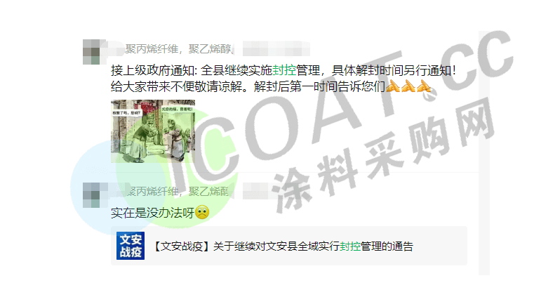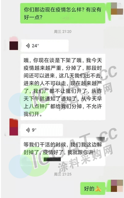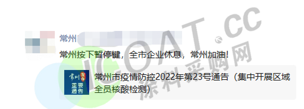 某化工企業表示,浙江寧波地區疫情或將導致封路,提醒客戶注意備貨。